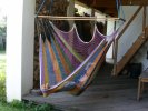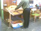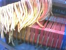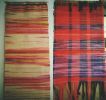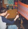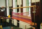 Webstuhl Marke "Eigenbau" verrichtet treue Dienste, muß aber fallweise verstärkt werden. Relativ neu ist der Hochwebstuhl zum Gobelinweben. Weiters gibt es noch ein Marundei (japanischer Flechtstuhl) und ein Spinnrad, welches auch zum Spulen verwendet wird.