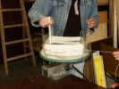 Patentierung 1992. Das Ausgangsmaterial (Baumwolle und kardierte Schafwolle) wird in der Werkstätte